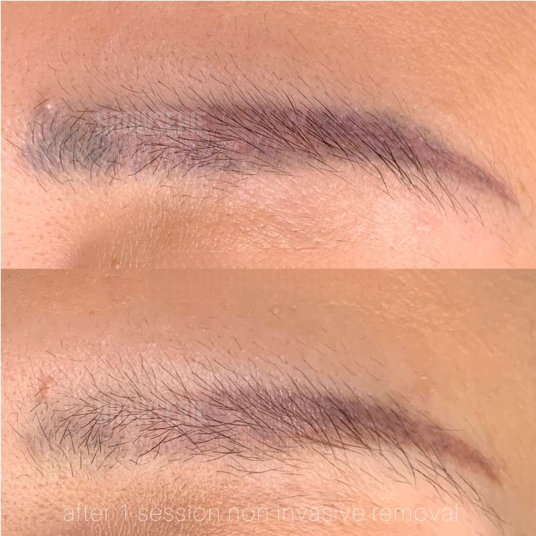Our eyebrow/eyeliner tattoo removal breaks up pigment particles that are in your skin, which will then be absorbed and disposed of naturally by your body.