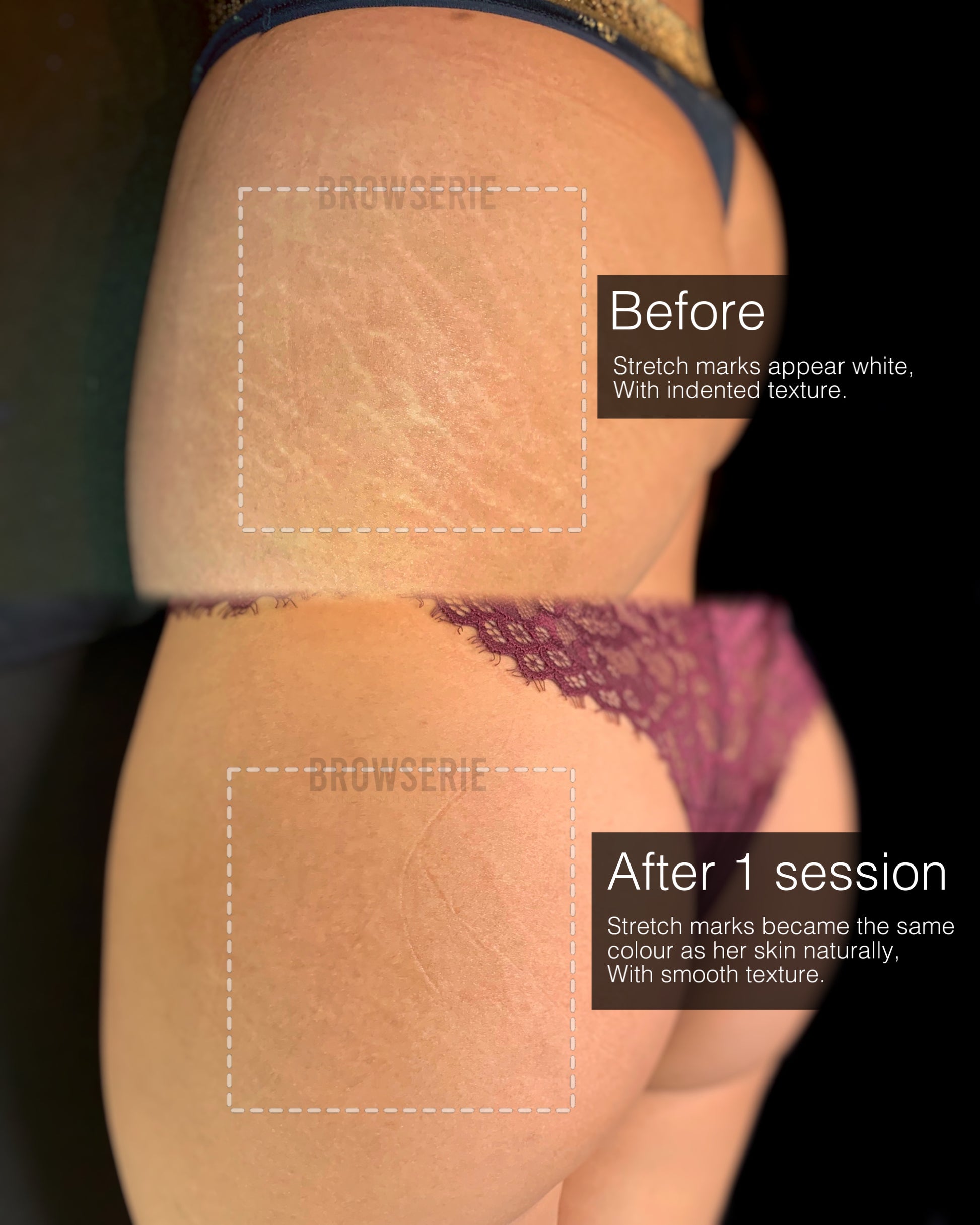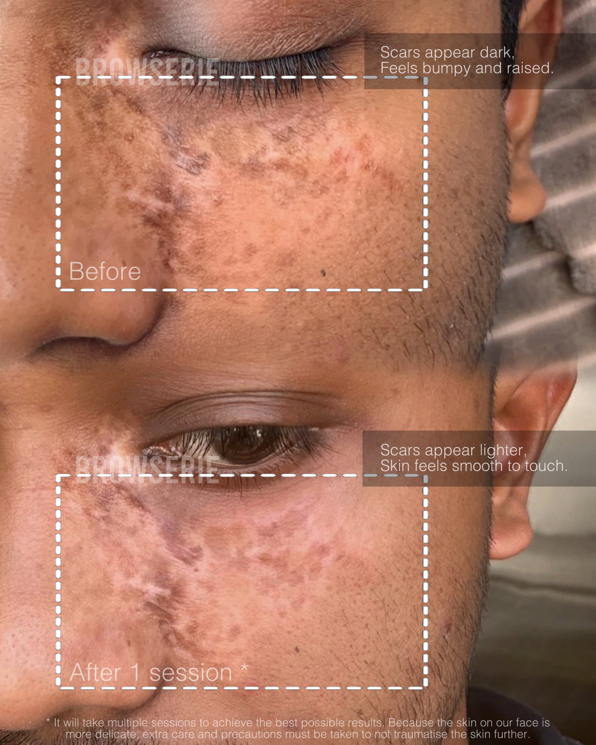 Inkless Scar Camouflage is a procedure where a potent serum will be used to help your skin heal naturally from the inside out to improve the texture of the skin. This is suitable for indented scars, burn scars or wide stretch marks with texture.